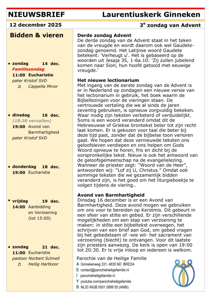 Nieuwsbrief H. Laurentiuskerk Ginneken 12 decemberBeste lezer,