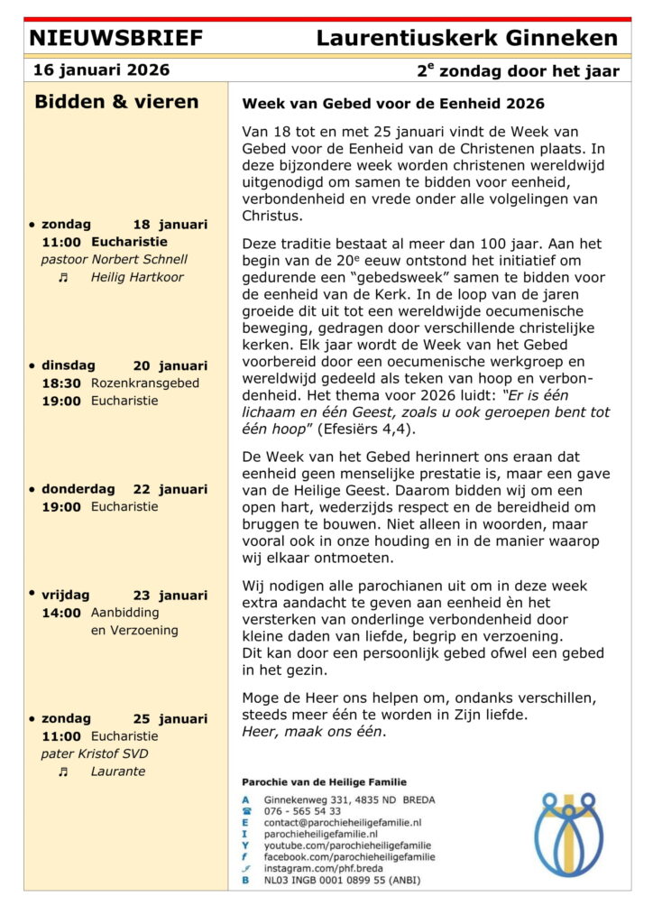 Nieuwsbrief H. Laurentiuskerk Ginneken 16 januari 2026