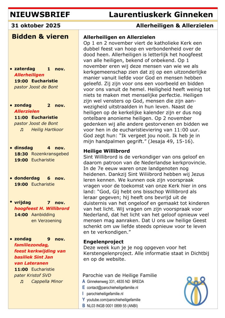 Nieuwsbrief H. Laurentiuskerk Ginneken 31 oktoberBeste lezer,